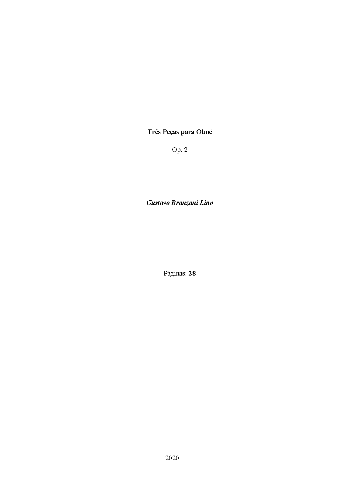 | Extra Information | Notes of the editor: "Three Pieces for Oboe" brings together a series of works by the author conceived between the years 2017 and 2020 as part of composition projects for harmony, rhythmic and chamber music classes in which he was involved in the Escola de Música do Estado de São Paulo (EMESP) Tom Jobim. The original manuscripts were reused several times with different combinations of instruments, until the author consolidated them in this collection, dedicated to a virtuoso oboist he met during his stints at the Escola Municipal de Música de São Paulo (EMM). |