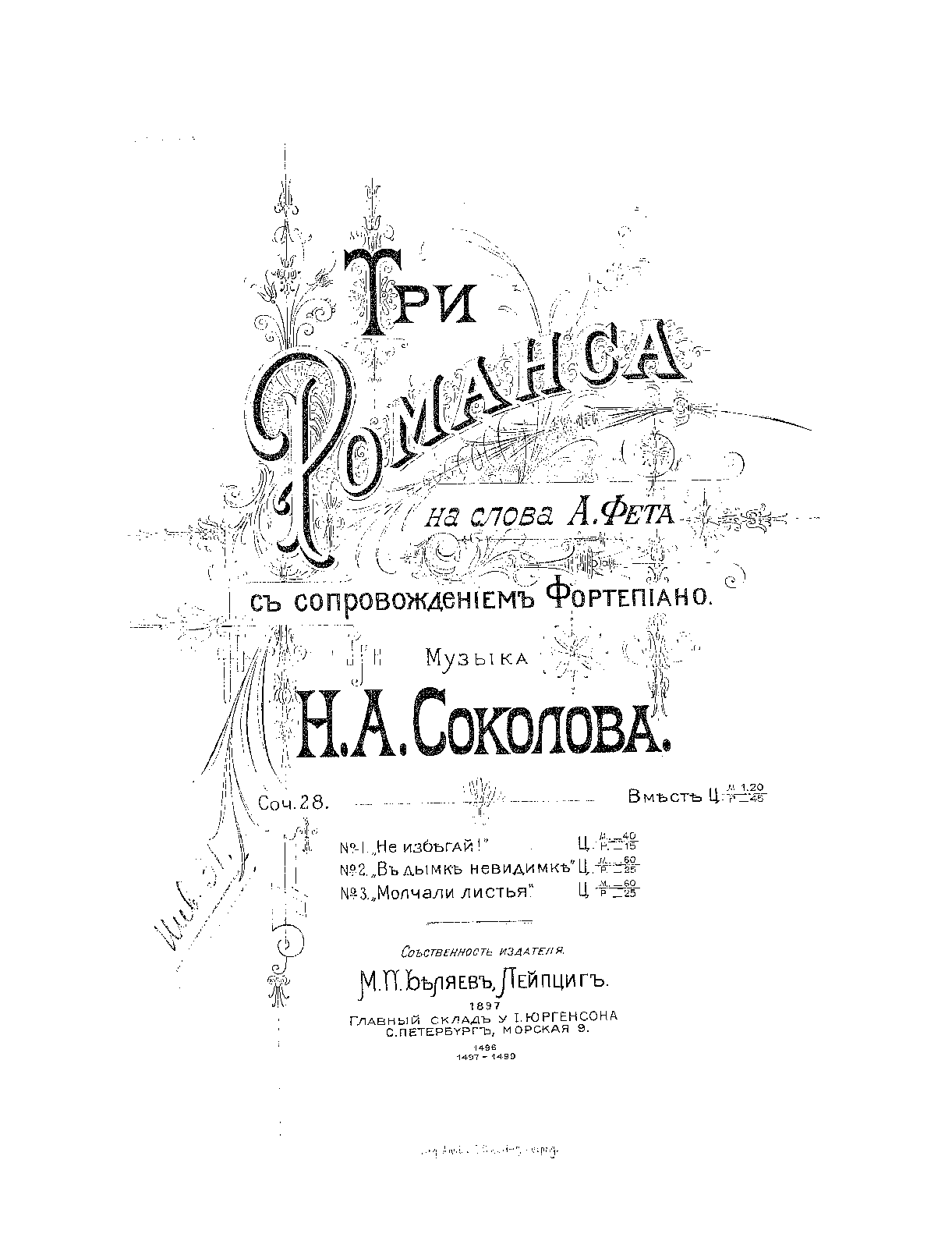 | Genre Categories | Romances; For voice, piano; For voices with keyboard; |