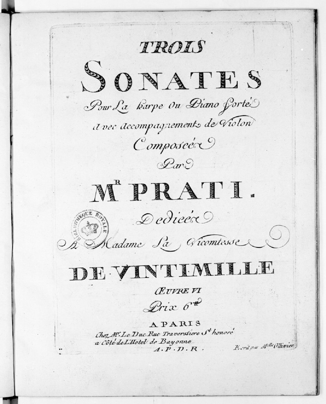 | Alternative. Title | Trois sonates pour la harpe ou piano forte avec accompagnement de violon |