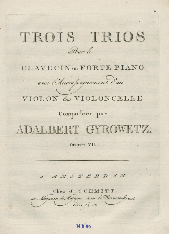 Trois trios pour le clavecin ou forte piano avec l'accompagnement d'un violon & violoncelle [...] oeuvre VII
