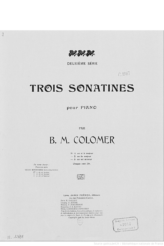 Janin frères published (at least) 2 sets of 3 sonatinas for piano each (first series: C major, C major, G major. 2nd series: B♭ maj., F maj., E min.) -- BNF scanned in the 3rd sonatine of the 2nd set, with the contents of the first two series on the first page, making this clear- so 6 sonatinas, not 3 as was once claimed in at least one source. - Schissel