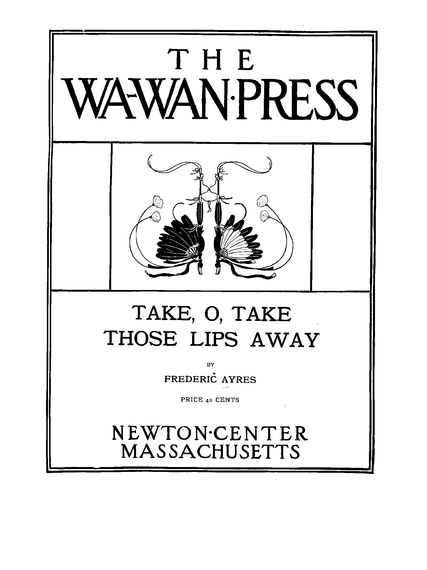 | Movements/SectionsMov'ts/Sec's | No.1 - Take, O, take those lips away No.2 - Where the bee sucks No.3 - Come unto these yellow sands |