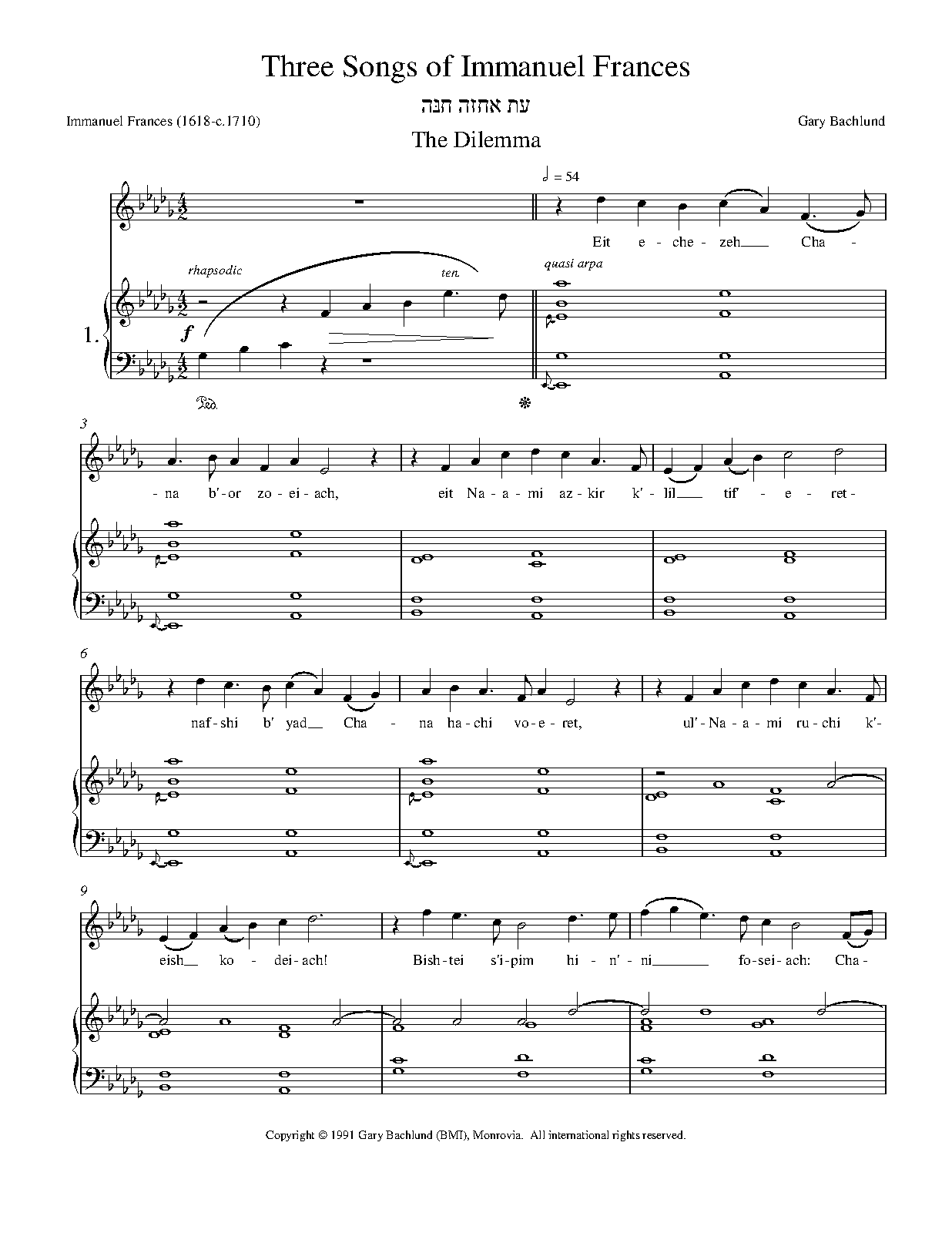 | Work Title | Three Songs of Immanuel Frances |