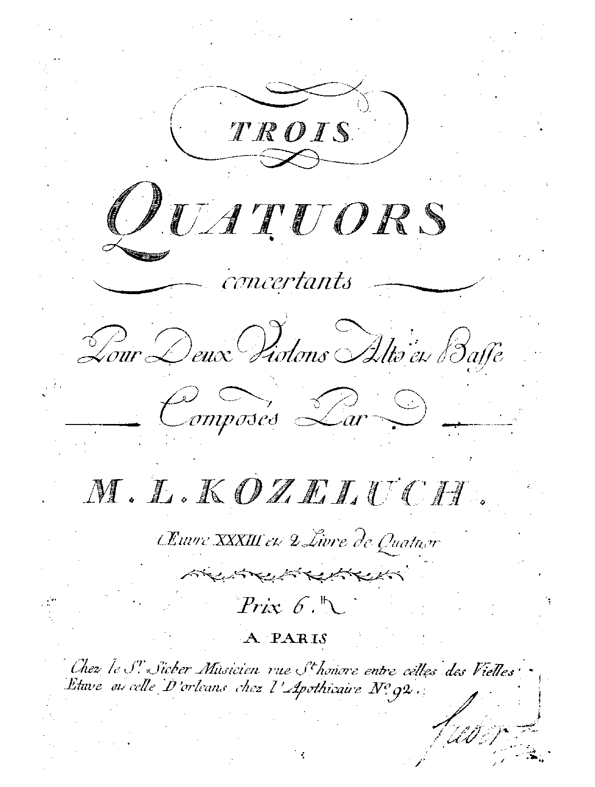 | Genre Categories | Quartets; For 2 violins, viola, cello; Scores featuring the violin; |