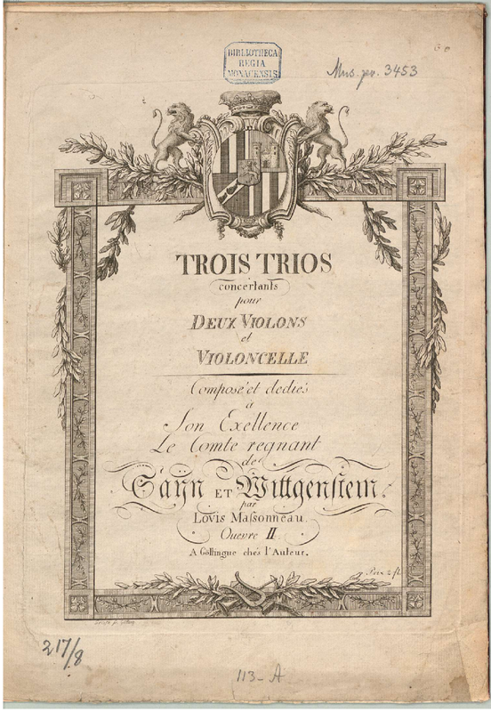 | Dedication | son Exellence le Comte regnant de Sayn et Wittgenstein |