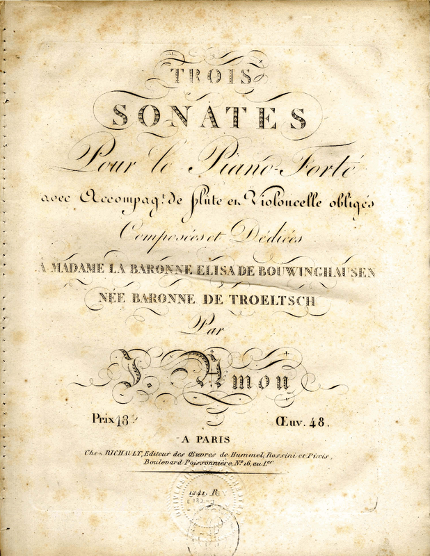| Work Title | Trois sonates pour le piano-forté avec accompagt. de flûte et violoncelle obligés, oeuv. 48 |