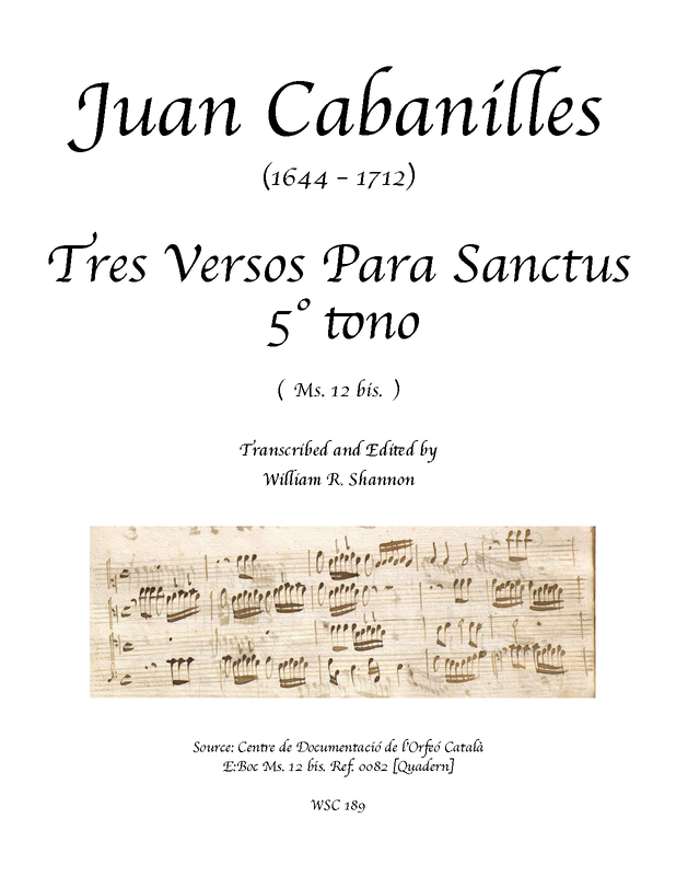 | Alternative. Title | Tres Versos para Sanctus 5° tono, WSC 189 |