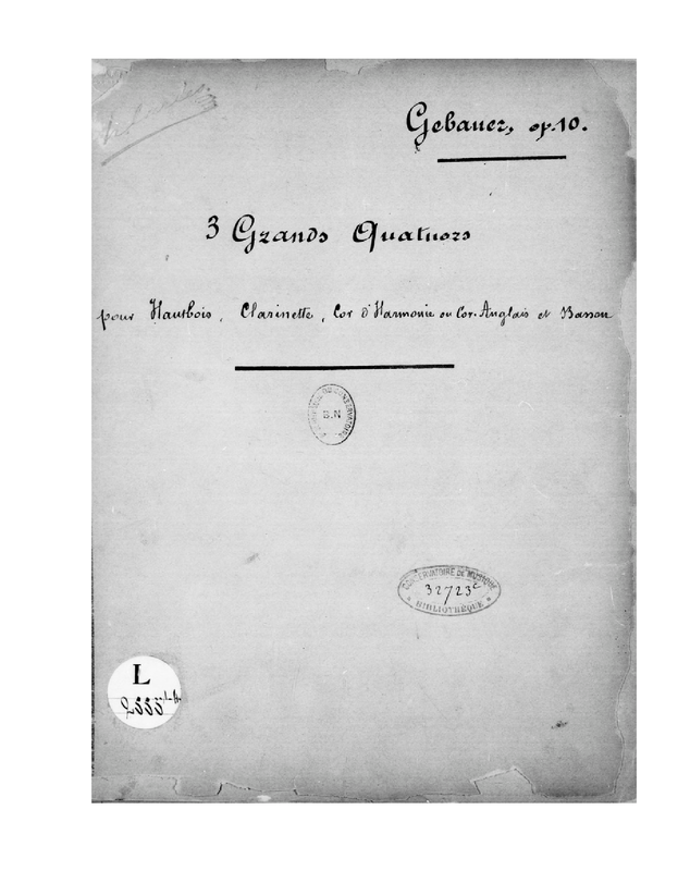 | Alternative. Title | Trois Quatuors Concertans pour deux clarinettes, cor et basson, oeuvre Xe |
