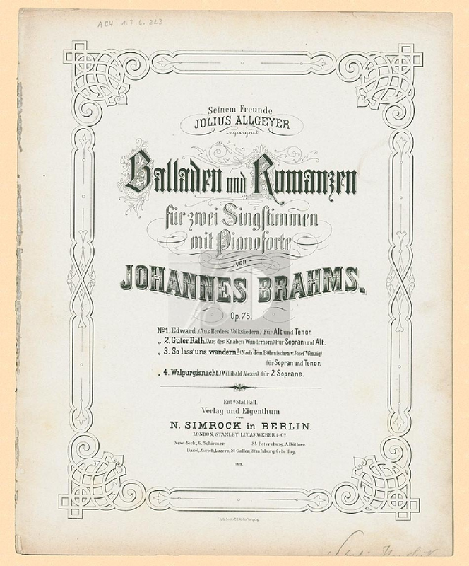 | First Publication. | 1878 (November/December) – Berlin: N. Simrock |