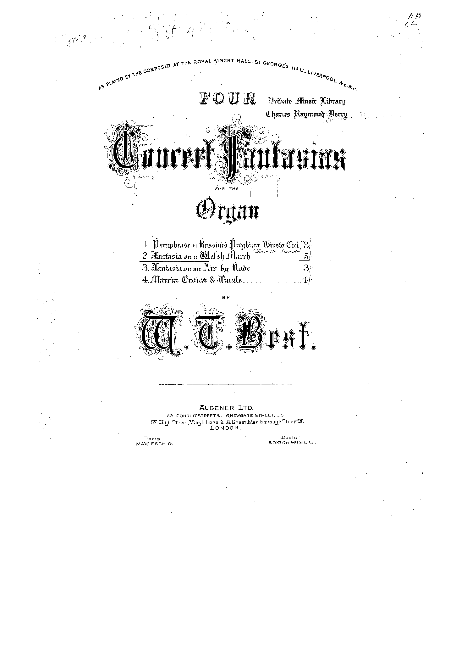 | Genre Categories | Fantasias; For organ; Scores featuring the organ; For 1 player |