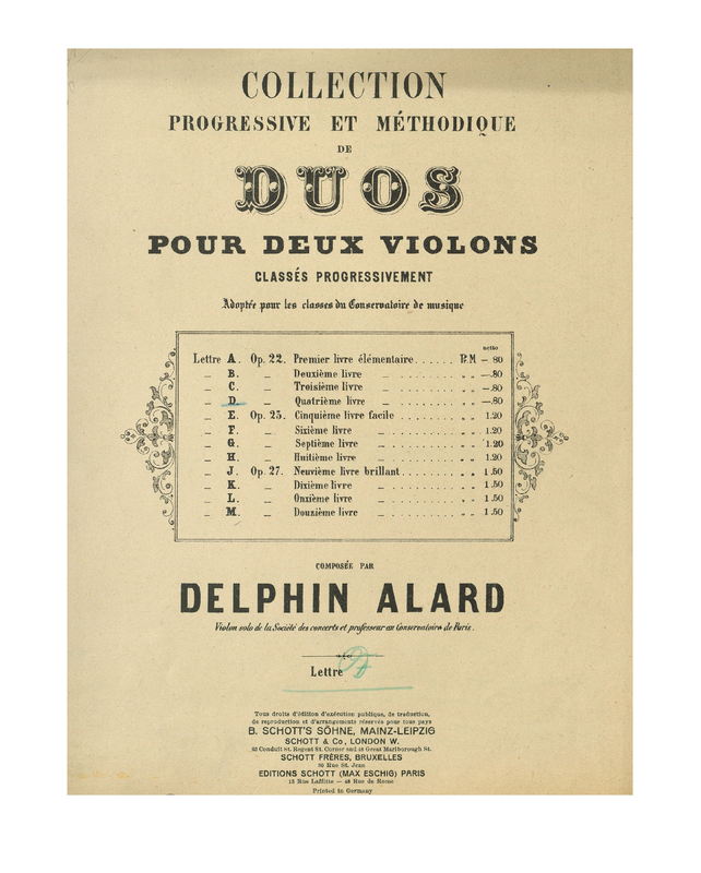 The duos from Alard's three sets of duos (Opp.22, 23, 27) were eventually assigned both letter designations (A to M) and book designations (1 to 12). Op.22 would be letters A to D and books 1 to 4.