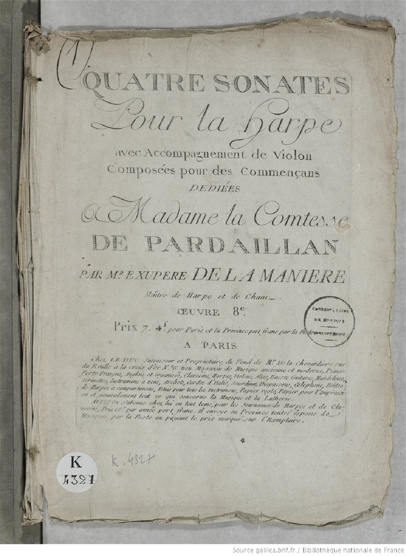 | Genre Categories | Sonatas; For harp, violin; Scores featuring the violin; |