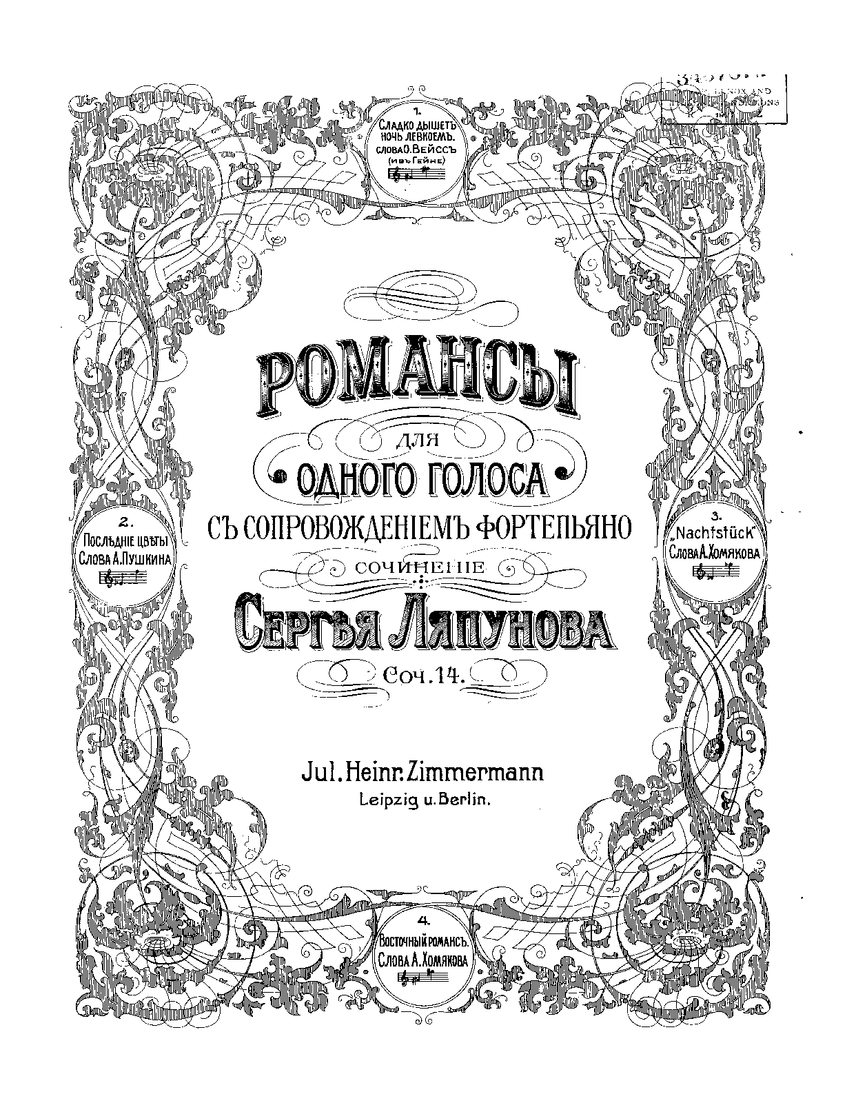 | Alternative. Title | Романсы для одного голоса с сопровождением фортепиано Romances Songs |