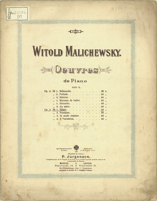| Alternative. Title | Oeuvres de piano op. 5. Witold Malichewsky |