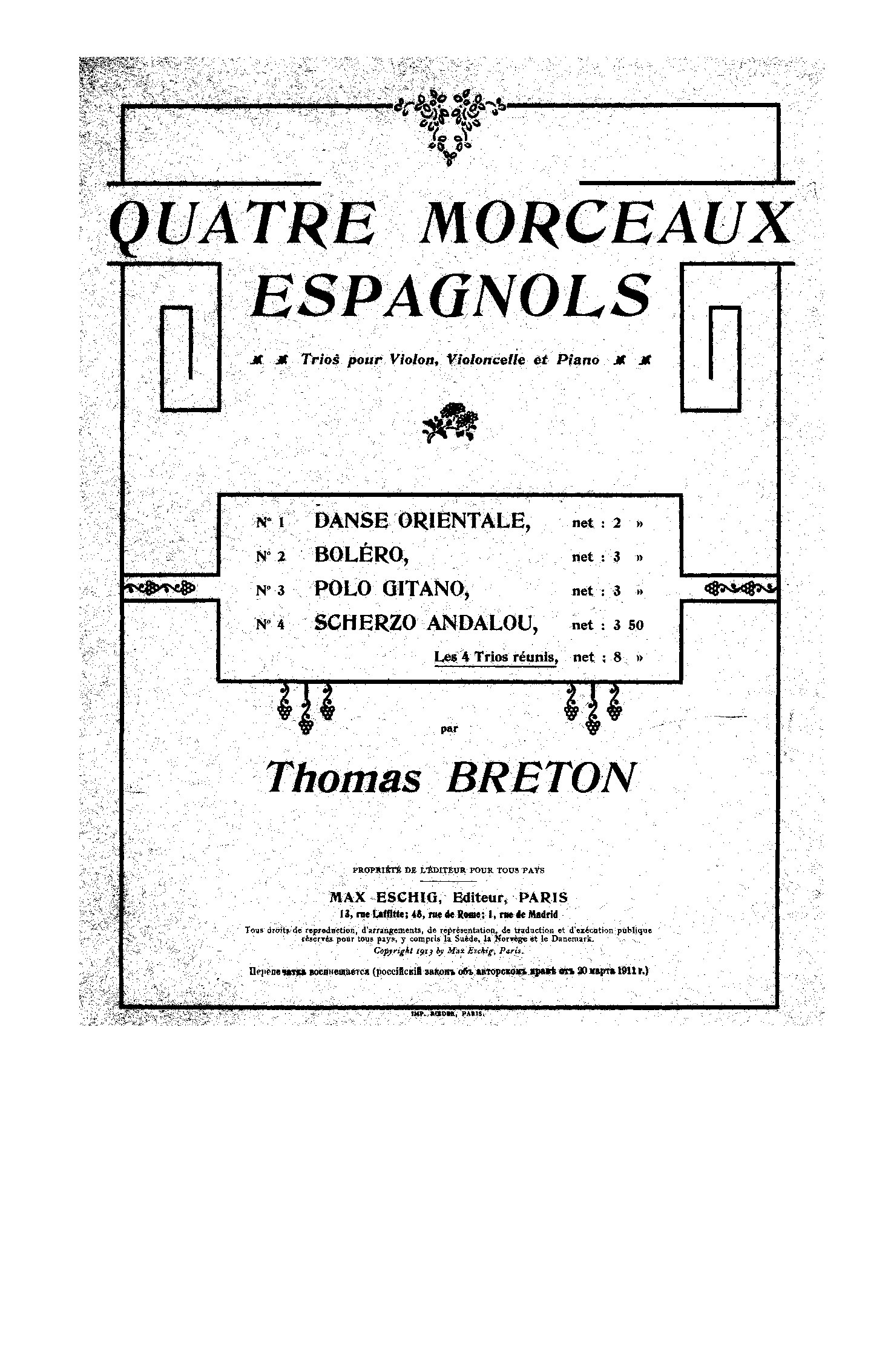 | Genre Categories | Pieces; Trios; For violin, cello, piano; |