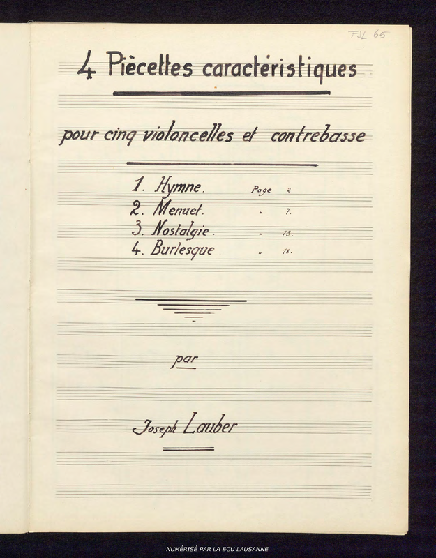 | Manuscript Sources | Bibliothèque cantonale et universitaire, Lausanne (CH-LAcu): Fonds Joseph Lauber, FJL 65 |