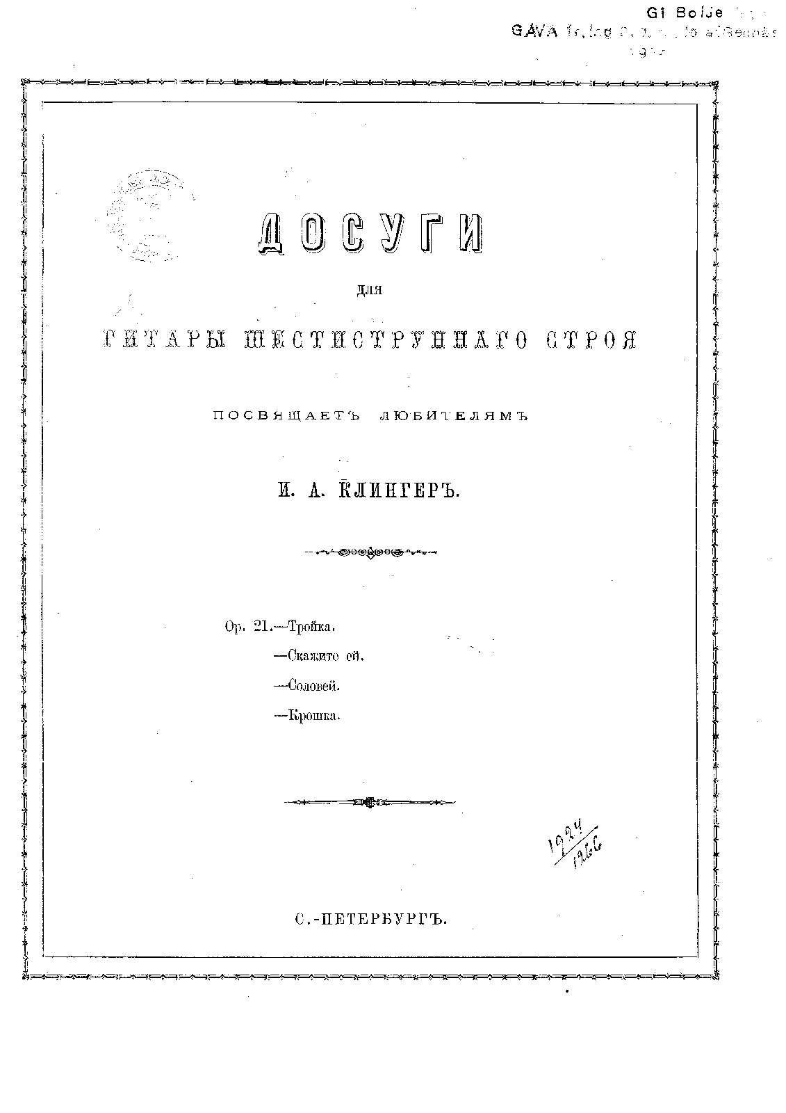 | Alternative. Title | Досуги для гитары шестиструннаго строя |