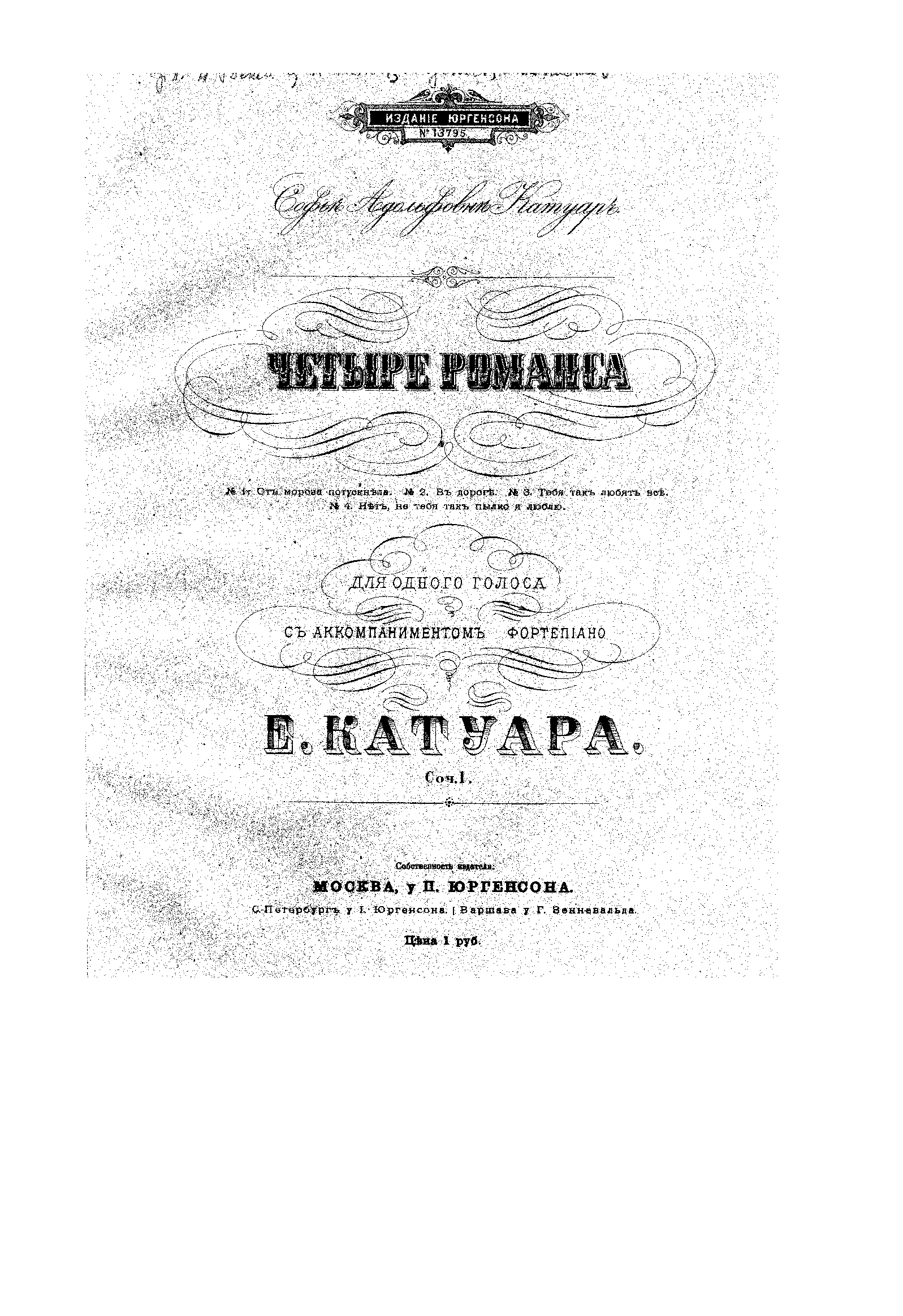 | Genre Categories | Romances; For voice, piano; For voices with keyboard; |