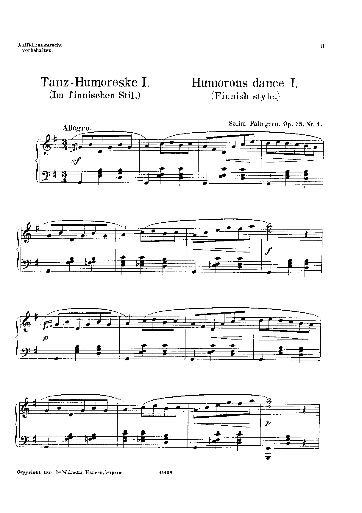 Publisher. Info. Leipzig: Wilhelm Hansen, 1913. Plate 15458–15461.