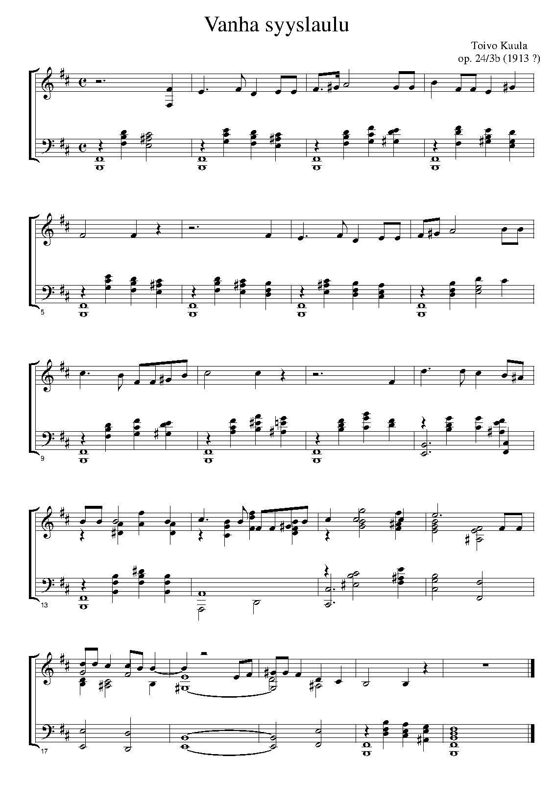 - Alma Silventoinen (voice), Toivo Kuula (piano)