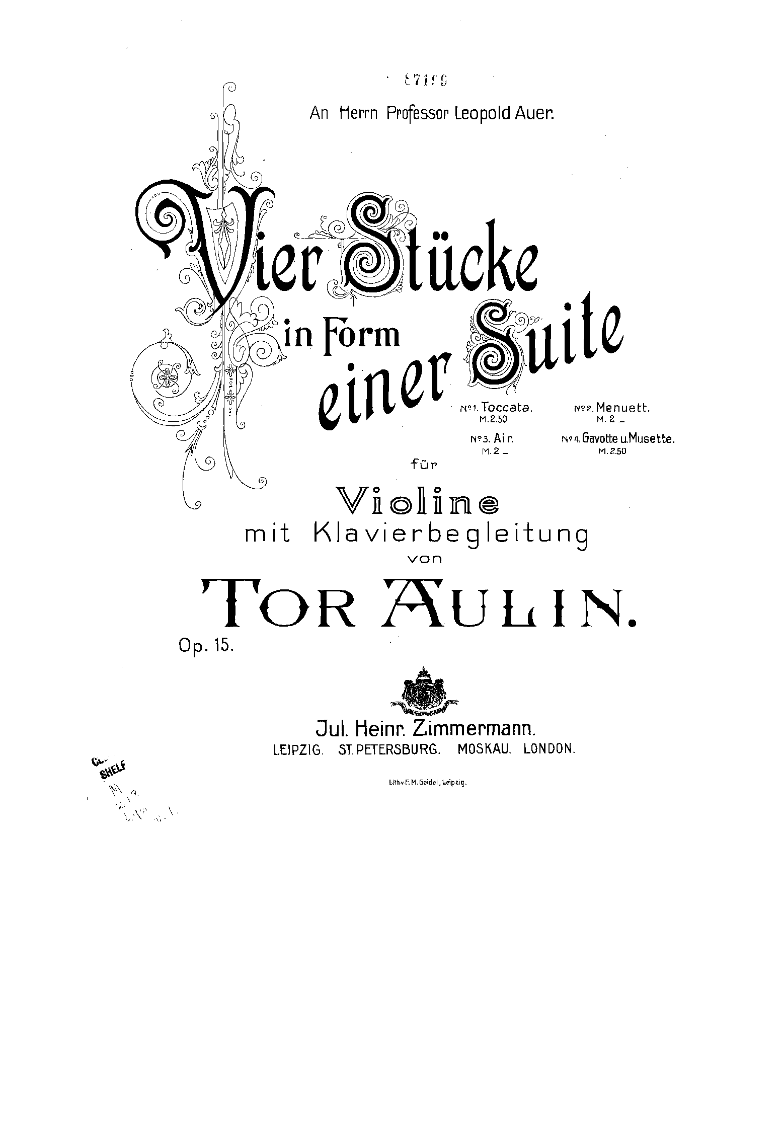 ⇒ 5 more: 1. Toccata (Score) • 2. Menuett (Score) • 3. Air (Score) • 4. Gavotte und Musette (Score) • Violin Part (complete)