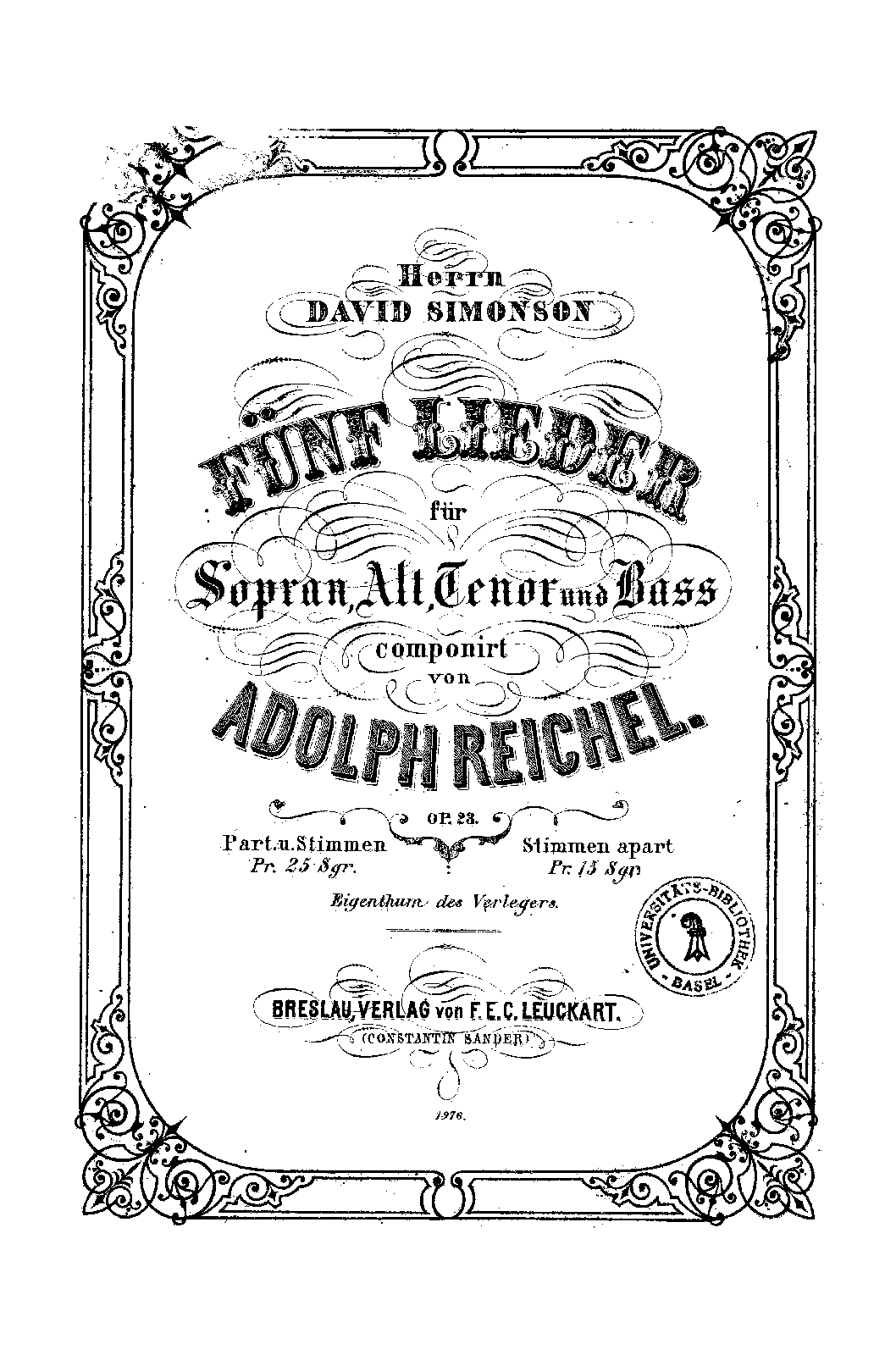 | Alternative. Title | Fünf Lieder für Sopran, Alt, Tenor und Bass |