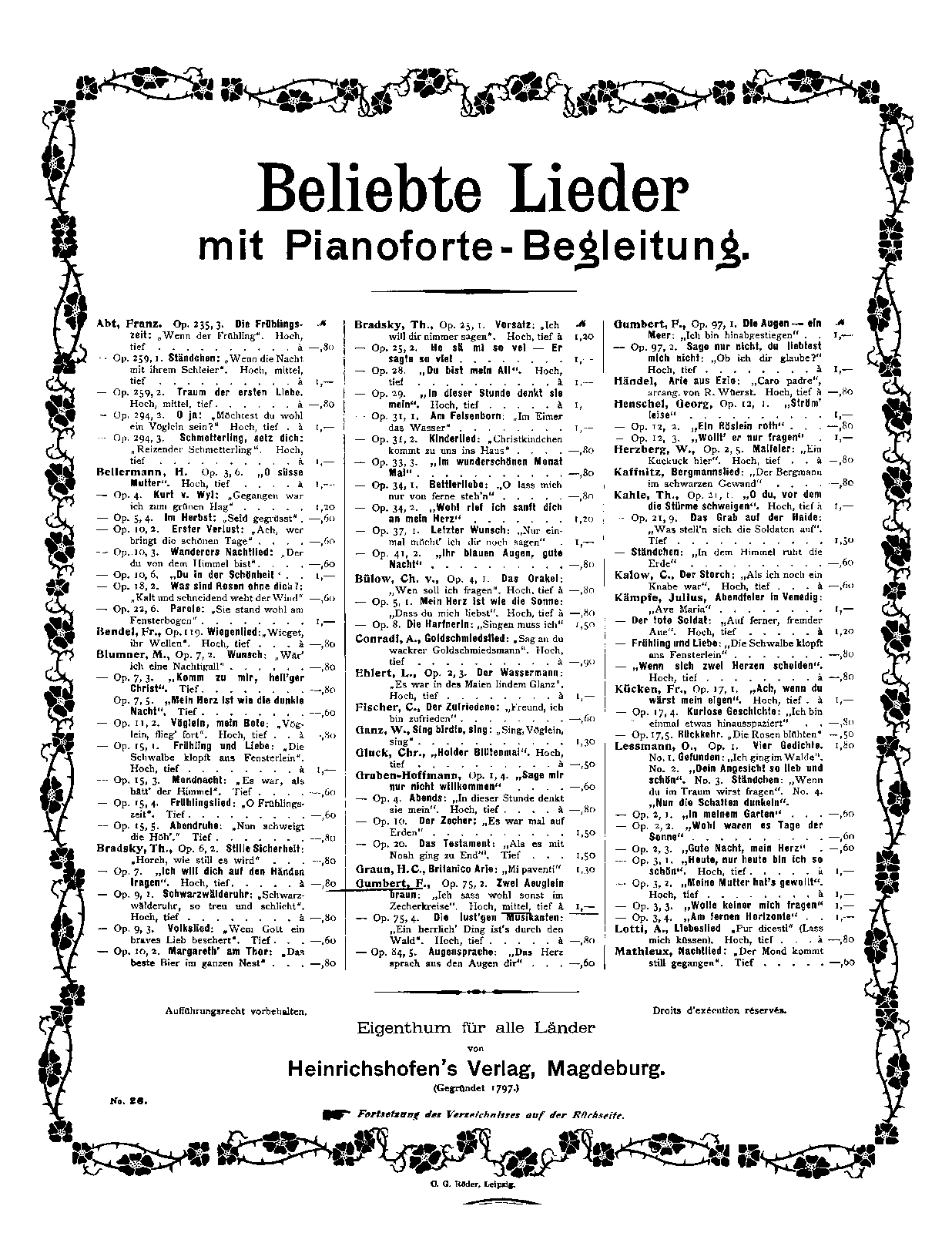 | Genre Categories | Lieder; Songs; For voice, piano; |