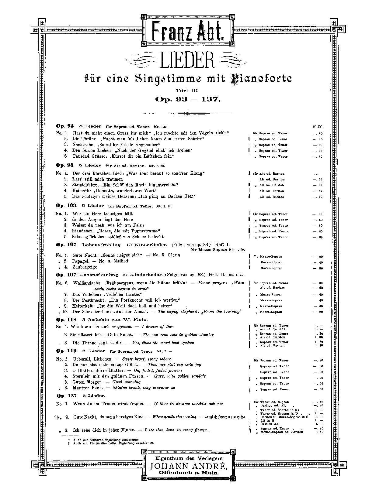 | Genre Categories | Lieder; Songs; For voice, piano; |