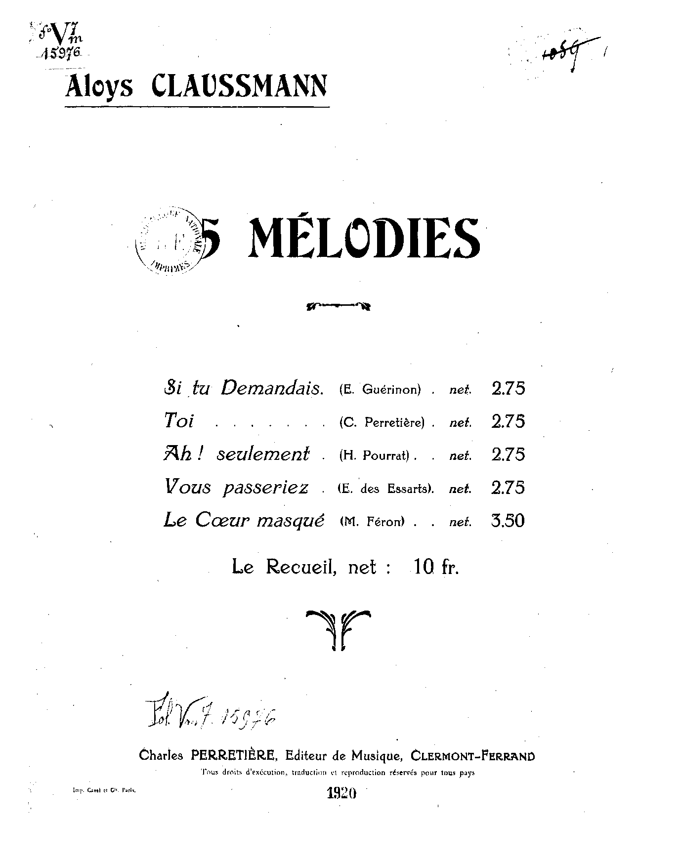 | Genre Categories | Melodies; Songs; For voice, piano; |