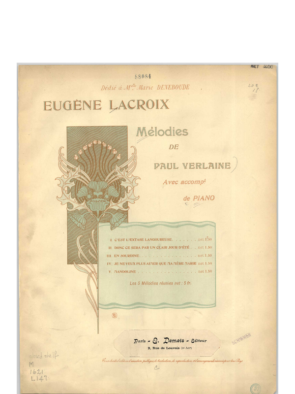 | Librettist | Paul Verlaine (1844-1896) |
