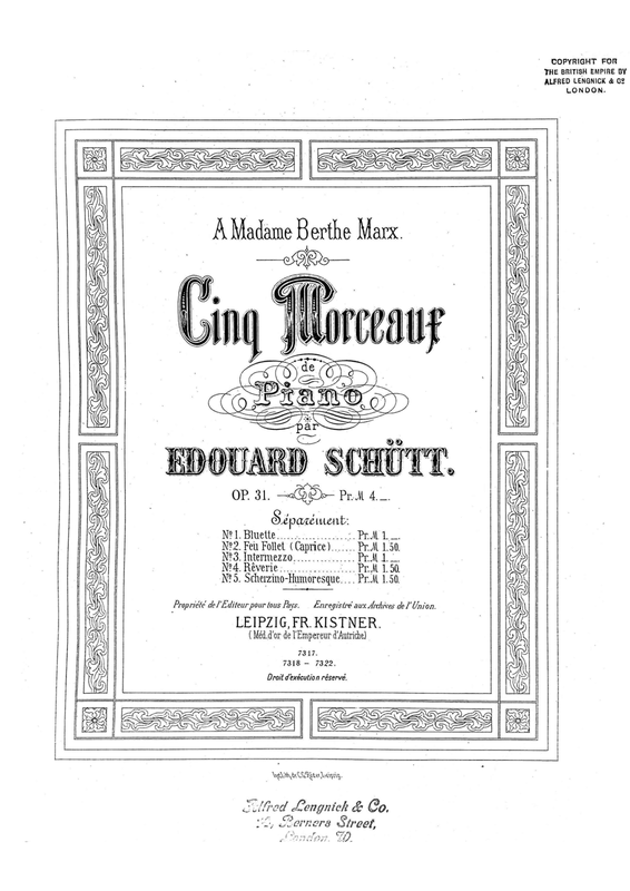 | Dedication | à Madame Berthe Marx (1857–1925) |