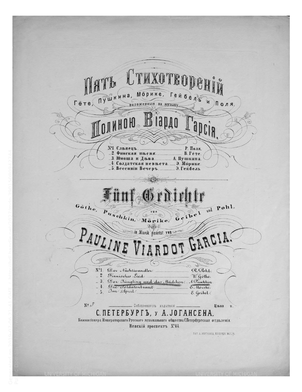 5 Gedichte von Gothe, Puschkin, Mörike, Geibel und Pohl [5 стихотворений Гёте, Пушкина, Морике, Гейбель и Поля]