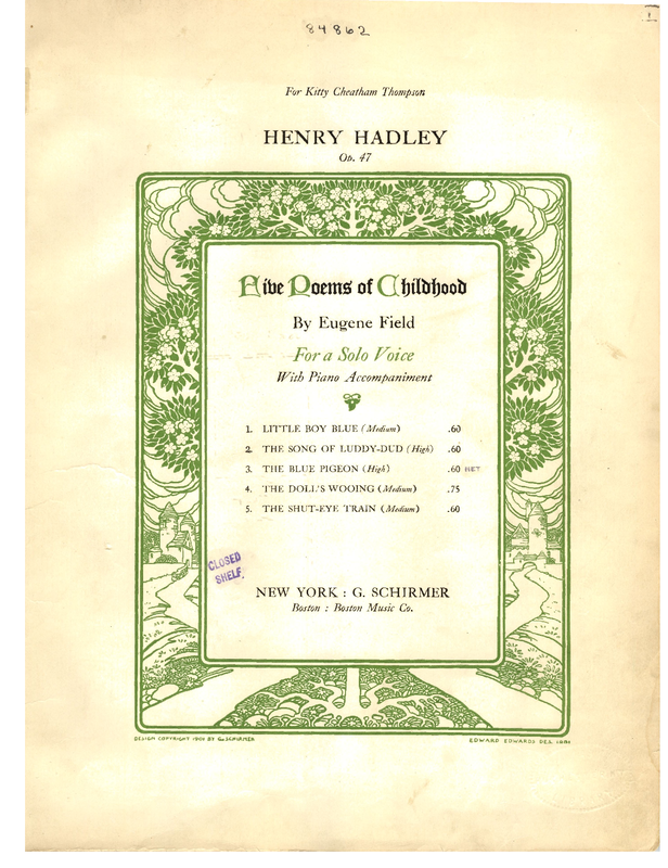 | Genre Categories | Songs; For voice, piano; For voices with keyboard; |