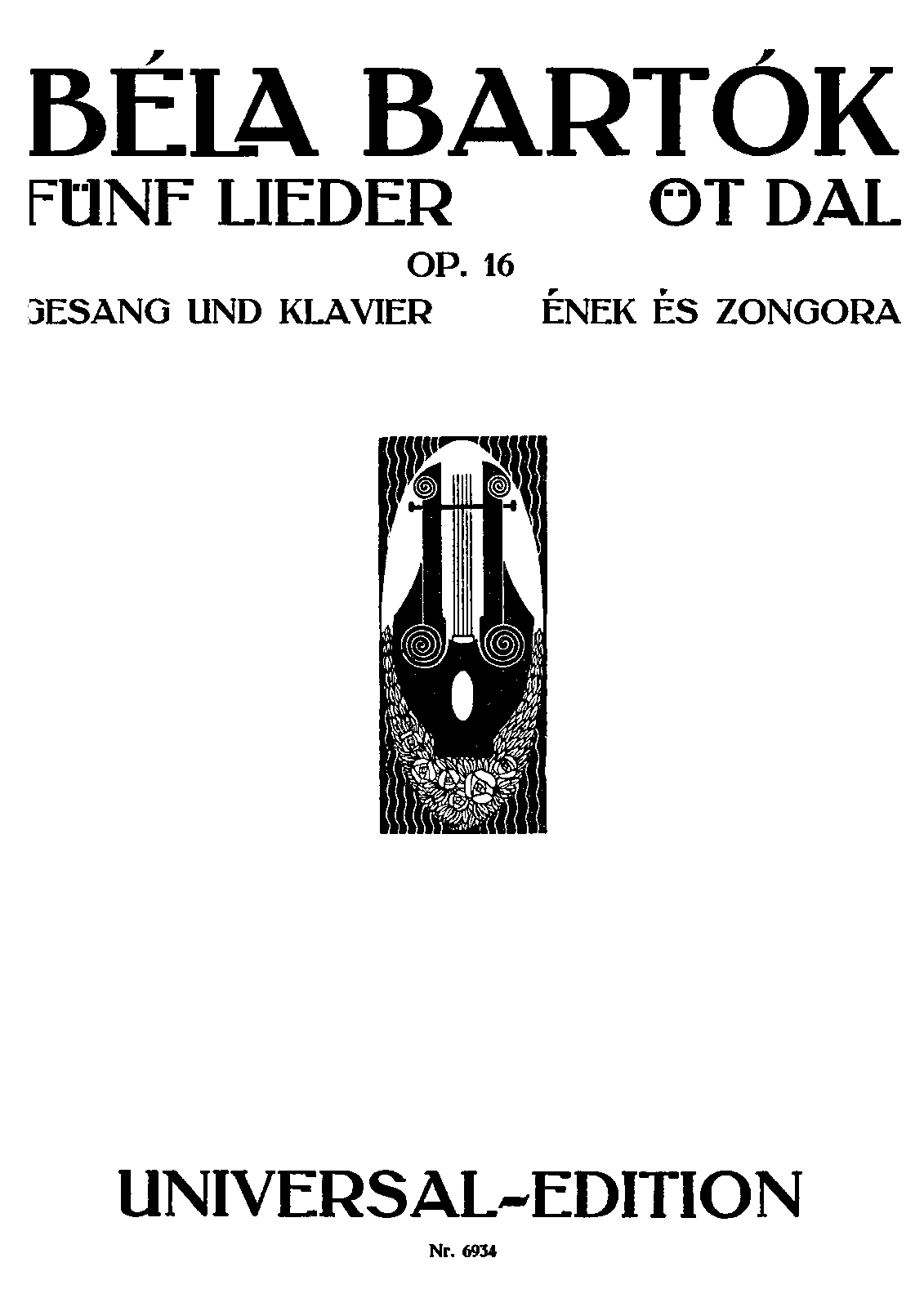 | Extra Information | Later reissued by Boosey & Hawkes (Plate B. & H. 17598), in which the original Hungarian text was replaced with an English translation by Nancy Bush (1906–1991). Composed around the same time as 5 Songs, Op.15, though the latter work was first published (in full) in 1961. |