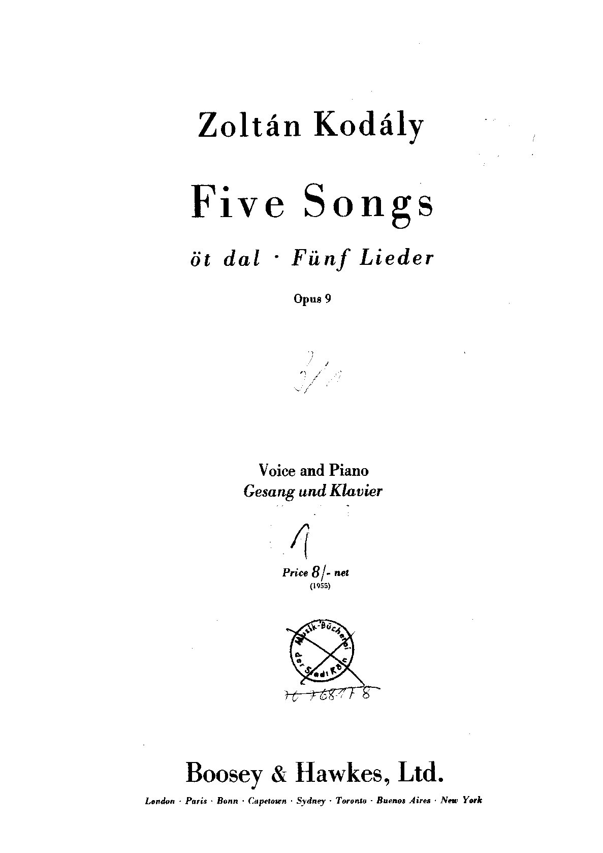 | Alternative. Title | Öt dal ; Fünf Lieder |
