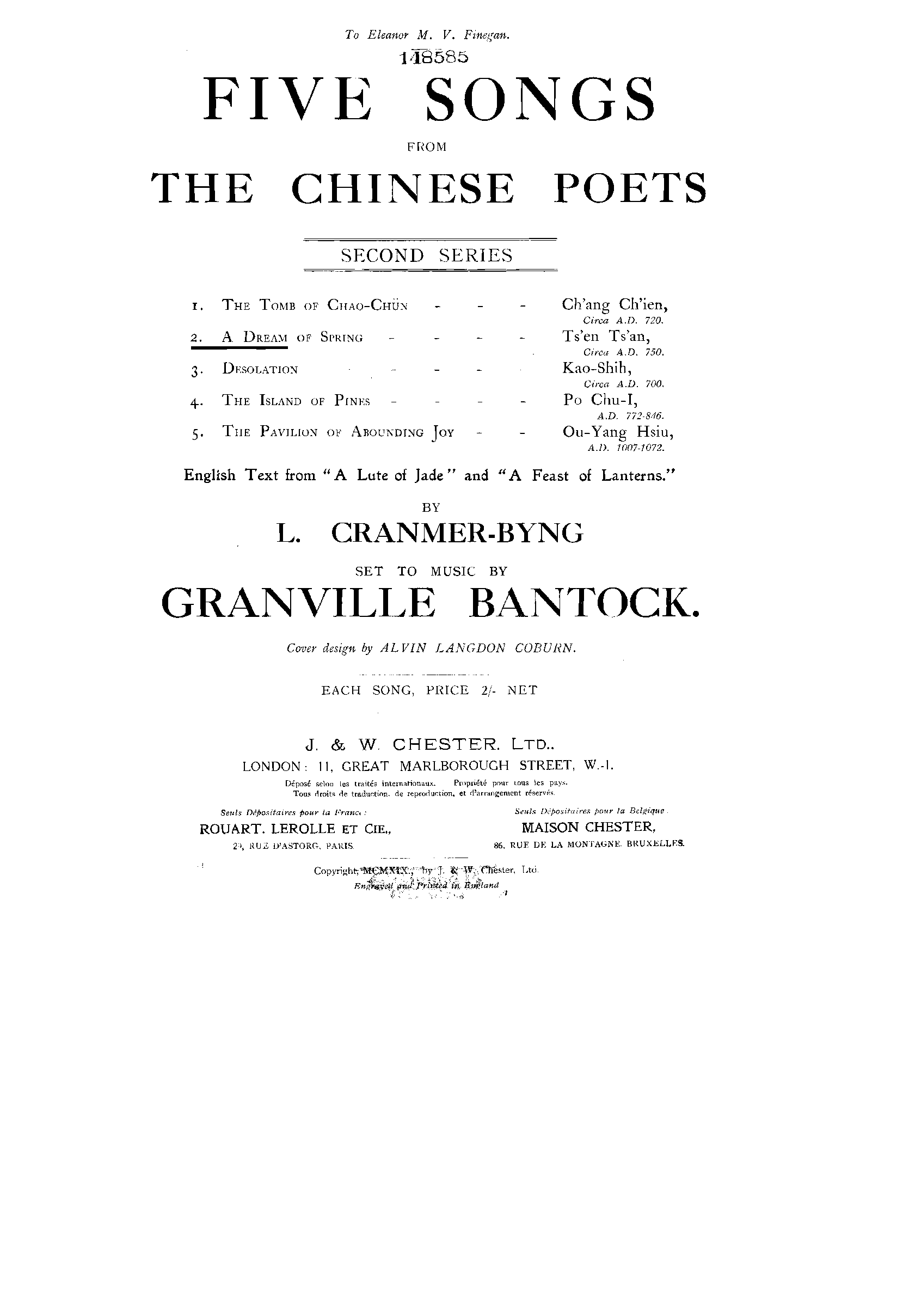 | Work Title | Five Songs from the Chinese Poets, 2nd Series |