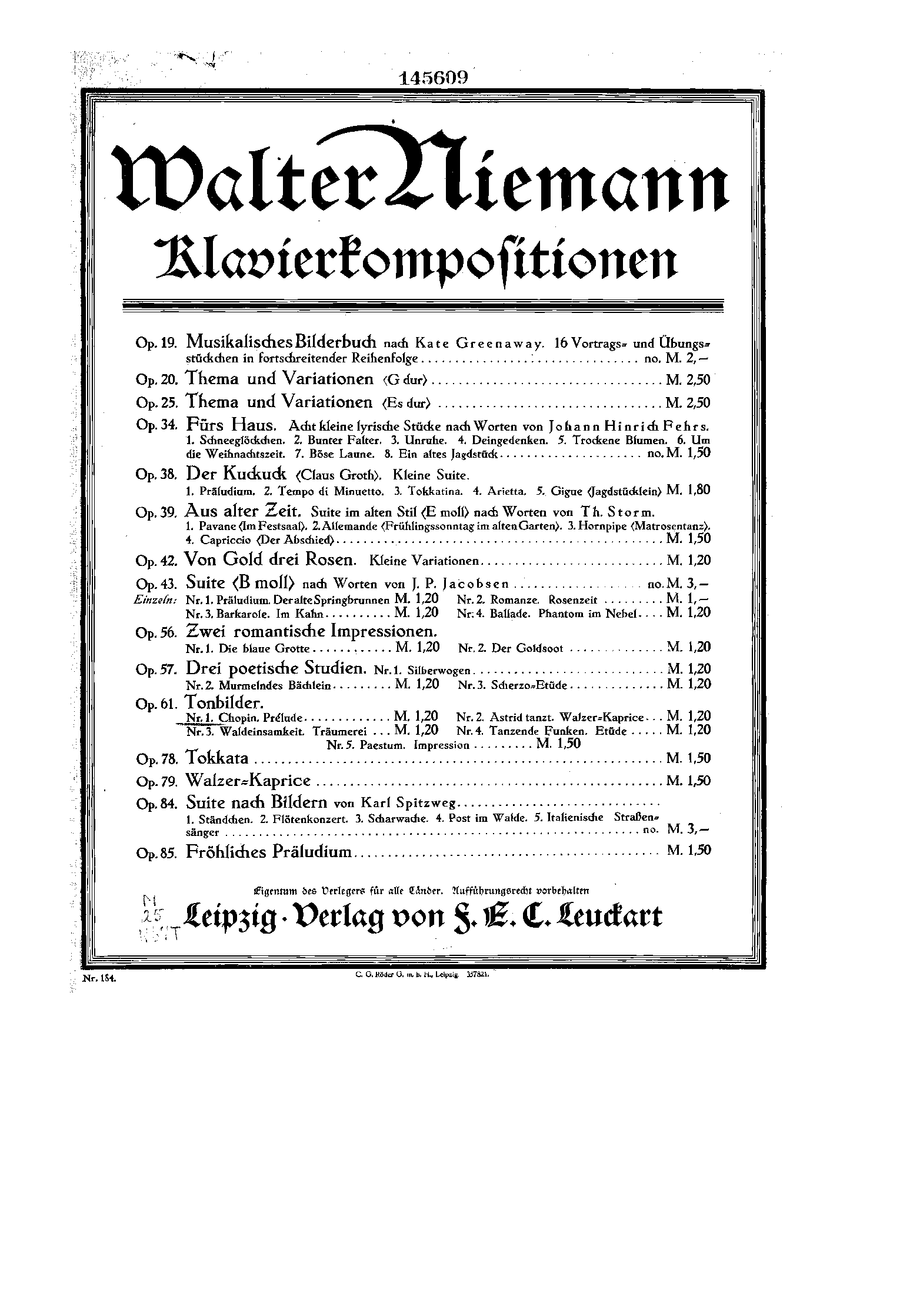 Leipzig: F.E.C. Leuckart, 1919. Plate 7827-7831.