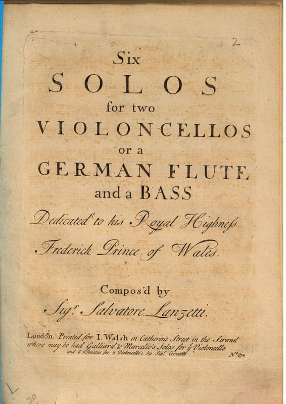 Six Solos for two Violoncellos or a German Flute and a Bass