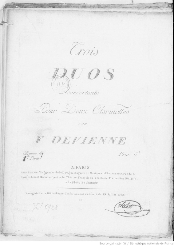 | Alternative. Title | Trois Duos concertants pour deux clarinettes |