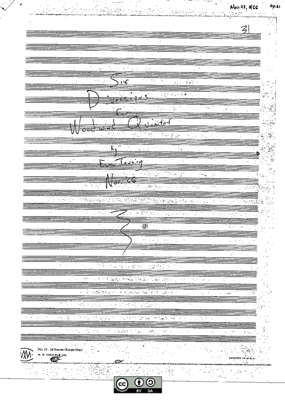 | Work Title | 6 Diversions for Woodwind Quintet |
