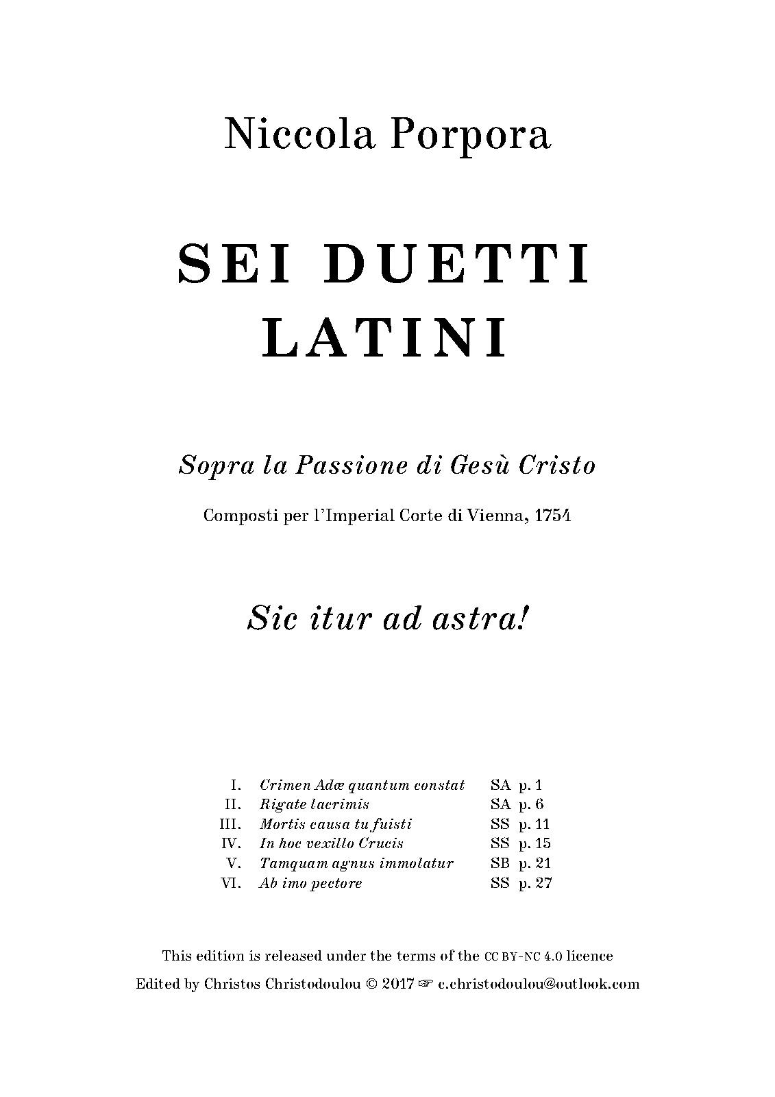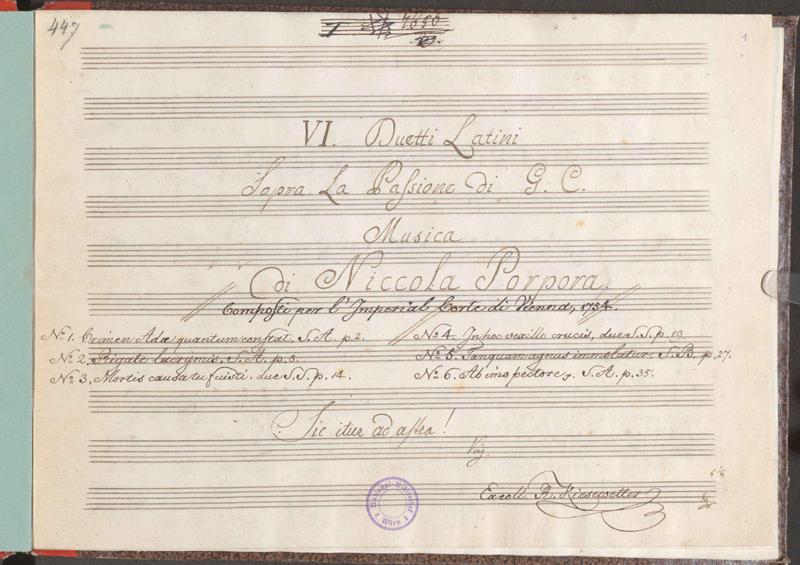 | Dedication | Composti per l’Imperial Corte di Vienna, 1754 |