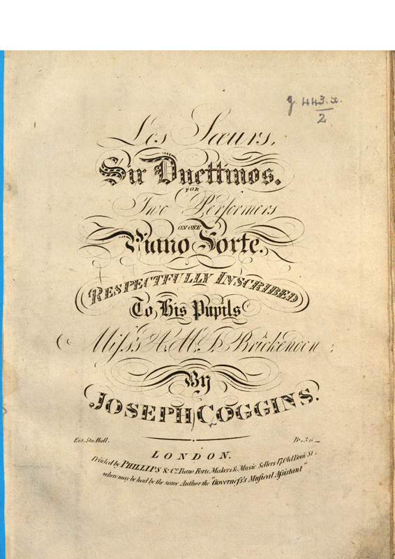 | Alternative. Title | Les Sœurs, Six Duettinos. For Two Performers on one Piano Forte |