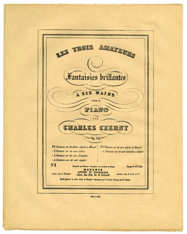 Alternative. Title Six fantaisies brillantes sur des mélodies favorites pour six mains sur un seul piano . Les trois amateurs