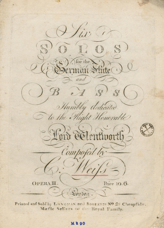 | Alternative. Title | 6 Solos pour le Flaute Traversiere avec l'accompagnement d'un Clavecin ou Violoncello |