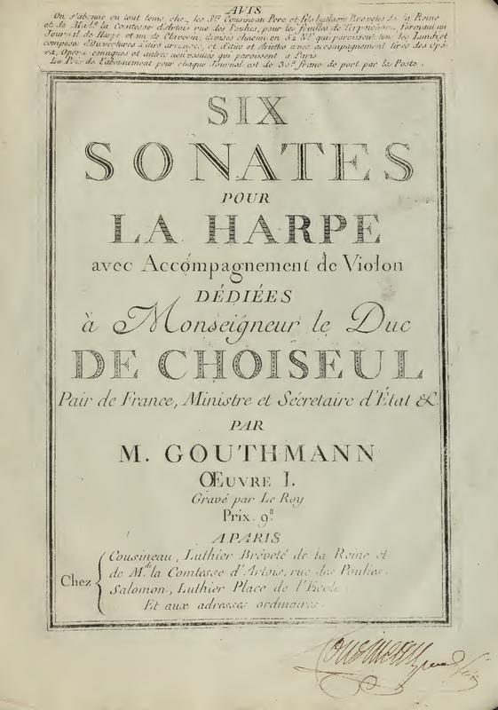 | Alternative. Title | Six sonates pour la harpe :avec accompagnement de violon |