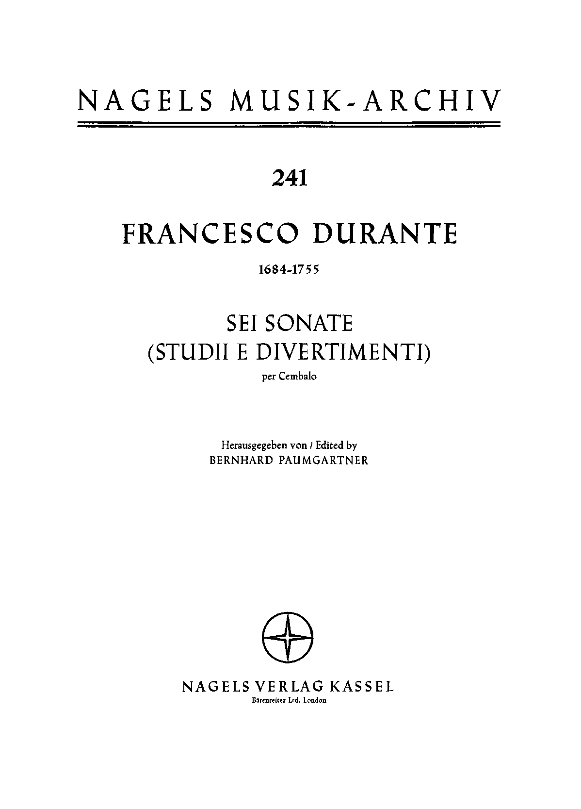 | Alternative. Title | Sei Sonate per cembalo divisi in studii e divertiment; Sei studii e sei divertimenti |