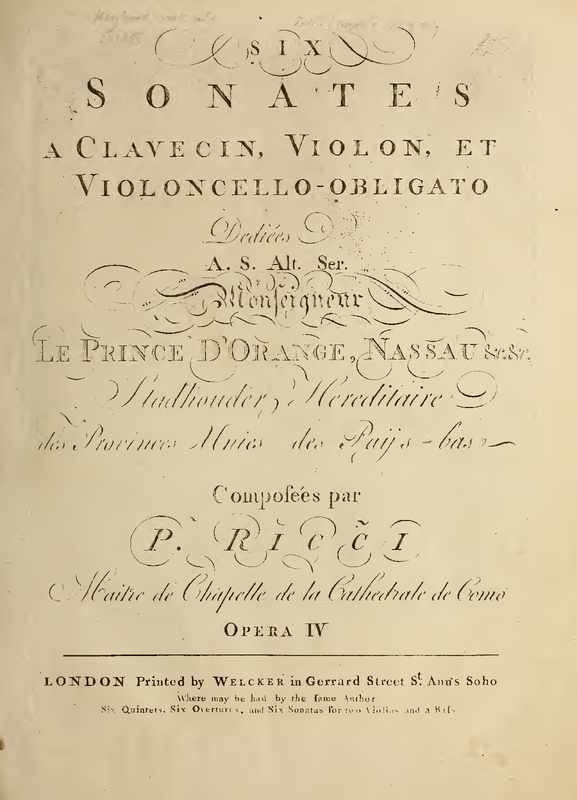 | Genre Categories | Sonatas; For violin, cello, harpsichord; Scores featuring the violin; |