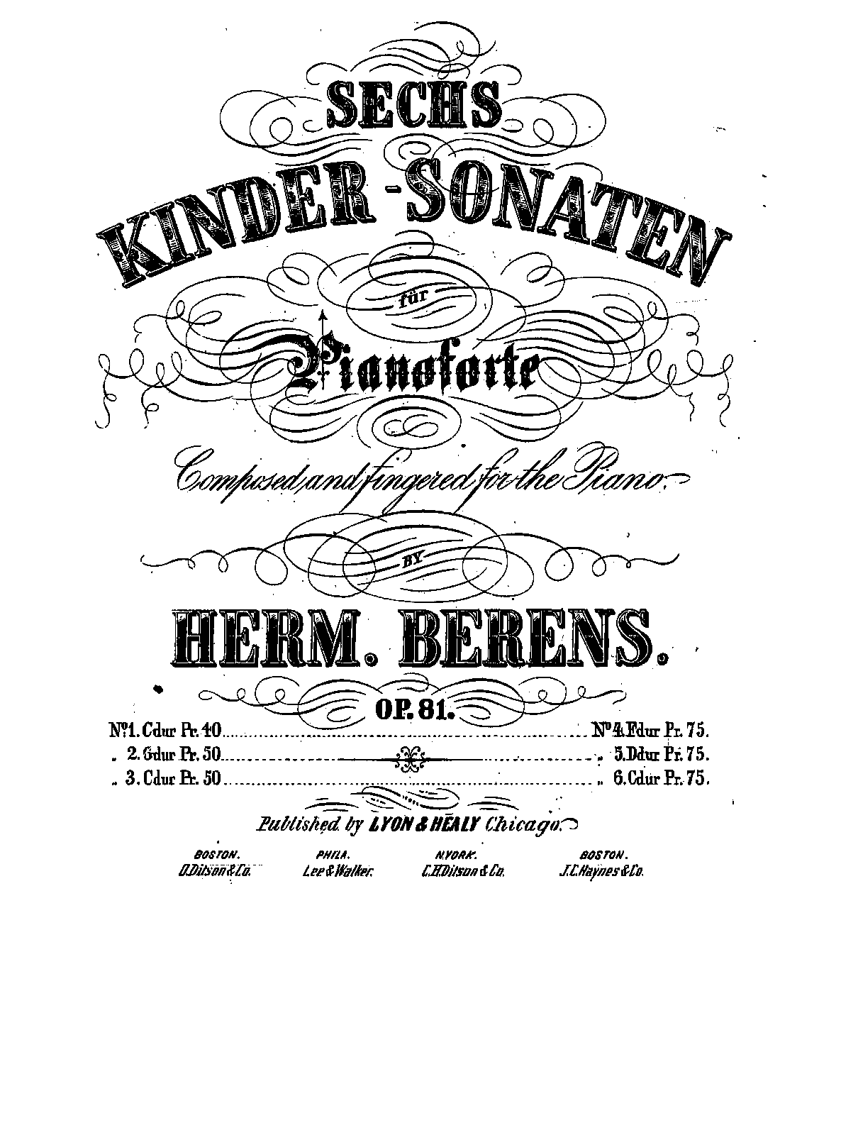 | Extra Information | Componirt und mit genauem Fingersatz bezeichnet von Hermann Berens. Capitalization as in HMB. (Effectively sonatinas, indeed, the Lyon & Healy edition of no.4 is titled Sonatine - haven't seen the Cranz original to determine whether or not it was (and all Worldcat gives is the above line, which, translated, is also in the Lyon & Healy version), and it's possible too that this only applies to no.4.) |