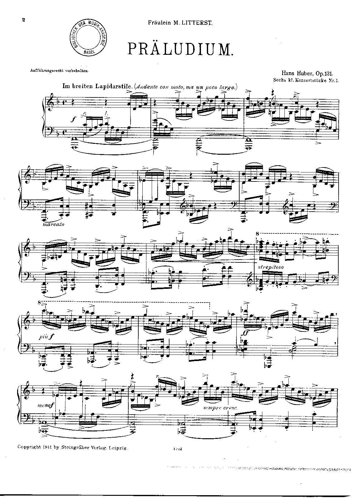 | First Publication. | 1911 – Leipzig: Steingräber |