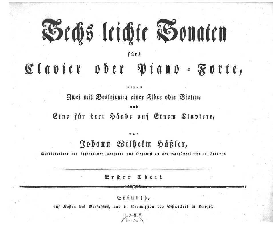 Sechs leichte Sonaten fürs Clavier oder Piano-Forte, wovon Zwei mit Begleitung einer Flöte oder Violine und Eine für drei Hände auf Einem Claviere